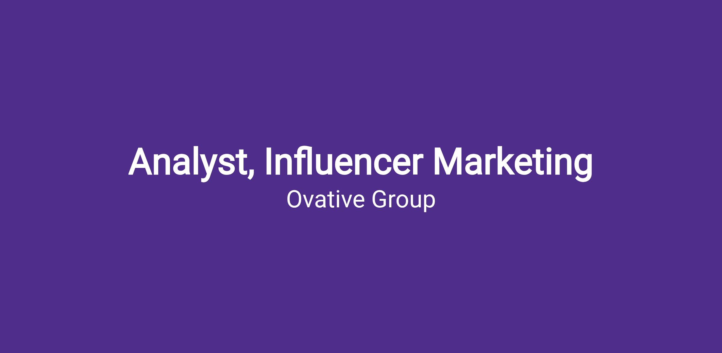 As an Analyst on the Influencer Team, you’ll learn how to lead strategy and manage execution of Influencer campaigns. You’ll be expected to learn and contribute to Ovative’s differentiated approach to Influencer marketing, stay abreast on Influencer Marketing trends, creators, and platform tools, and to leverage them to help deliver client success. In addition, you are encouraged to streamline internal processes, drive projects that push the channel & O/g forward, tell clear, concise stories leveraging a multitude of differing data sources.