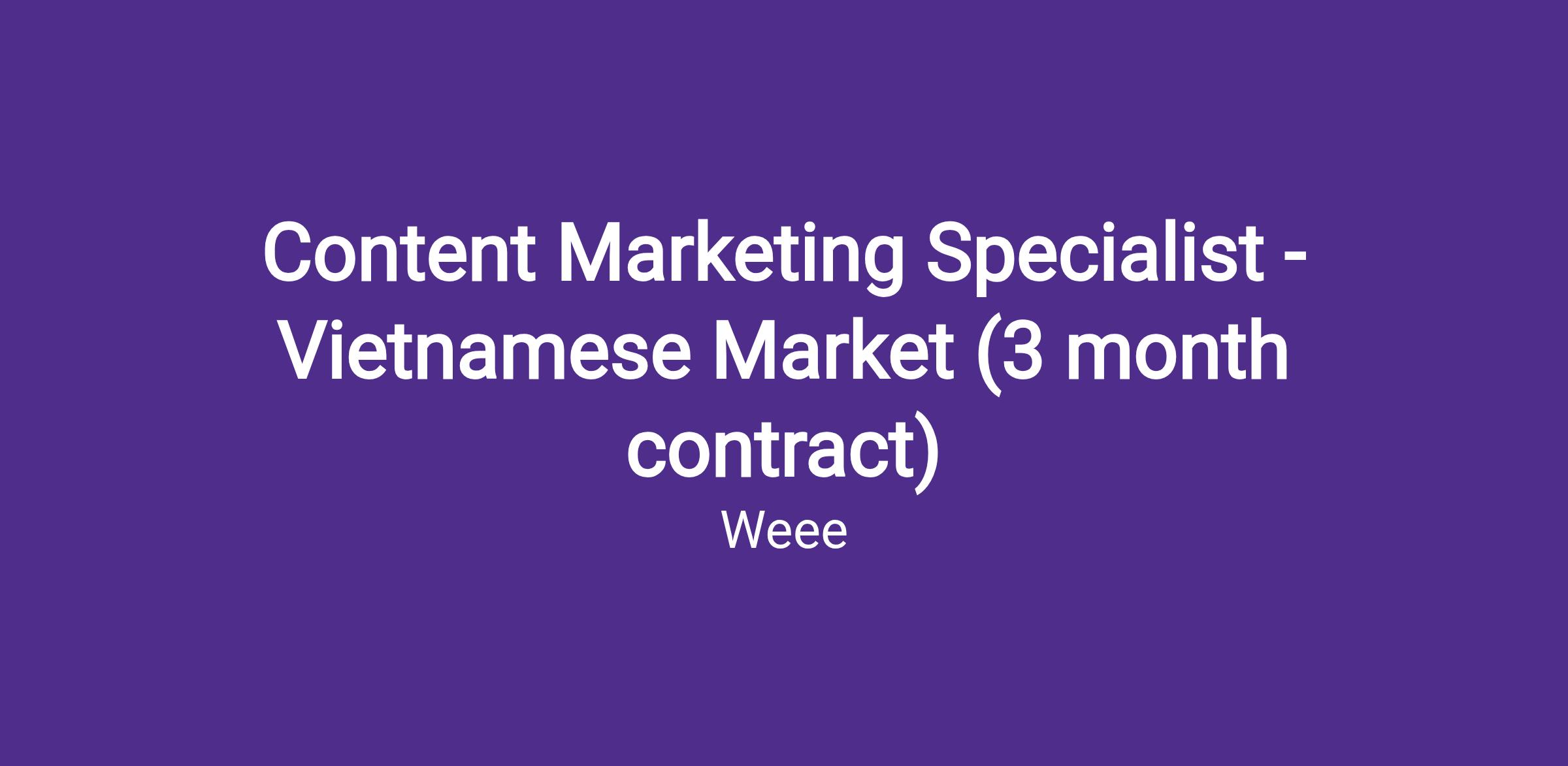 Weee! is looking for a talented, passionate Content Marketing Specialist to join our Vietnamese Marketing Team and help create high-impact campaigns for the Vietnamese community. In this role, you’ll partner closely with Merchandising and Product teams to build best-in-class in-app marketing content that drives key business metrics. This is a strong opportunity to grow with an entrepreneurial team in a fast-paced, dynamic environment.