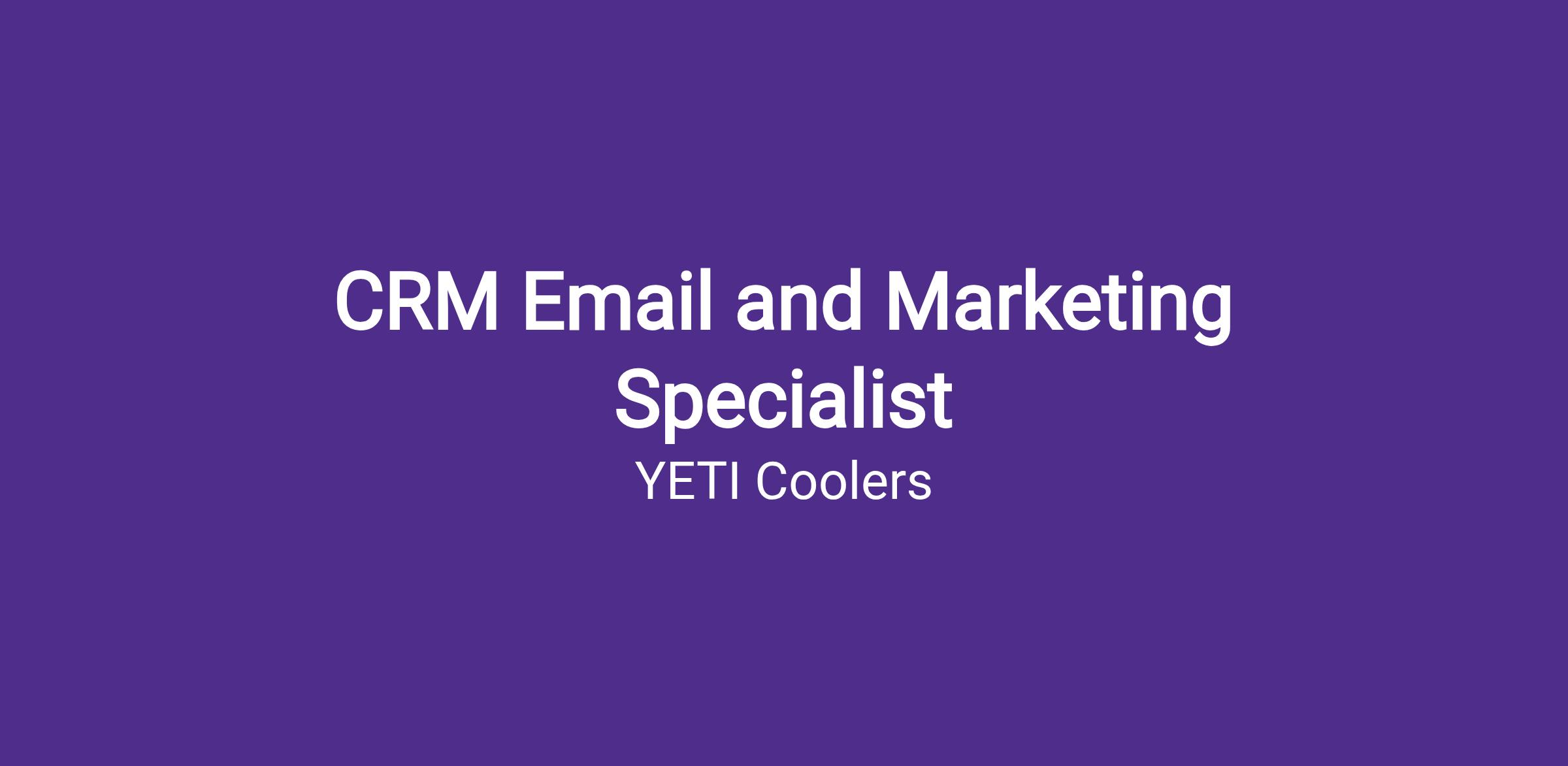 The CRM Email and Marketing Specialist will be responsible for tactical strategy, execution and reporting of outbound email and SMS campaigns for the US market. This role will report to the CRM and Email Marketing Manager. The ideal candidate is a highly motivated, self‐starting, direct-to-consumer-focused marketer who has a passion for using email & SMS to create meaningful 1:1 consumer experiences, individually and at scale. You are naturally thorough and have a high attention to detail. You thrive in fast-paced environments with entrepreneurial DNA, and you’re comfortable charting new territory. You aren’t afraid to run with ideas and understand YETI’s consumers and how to serve them with content that helps drive education, interest, and conversion.