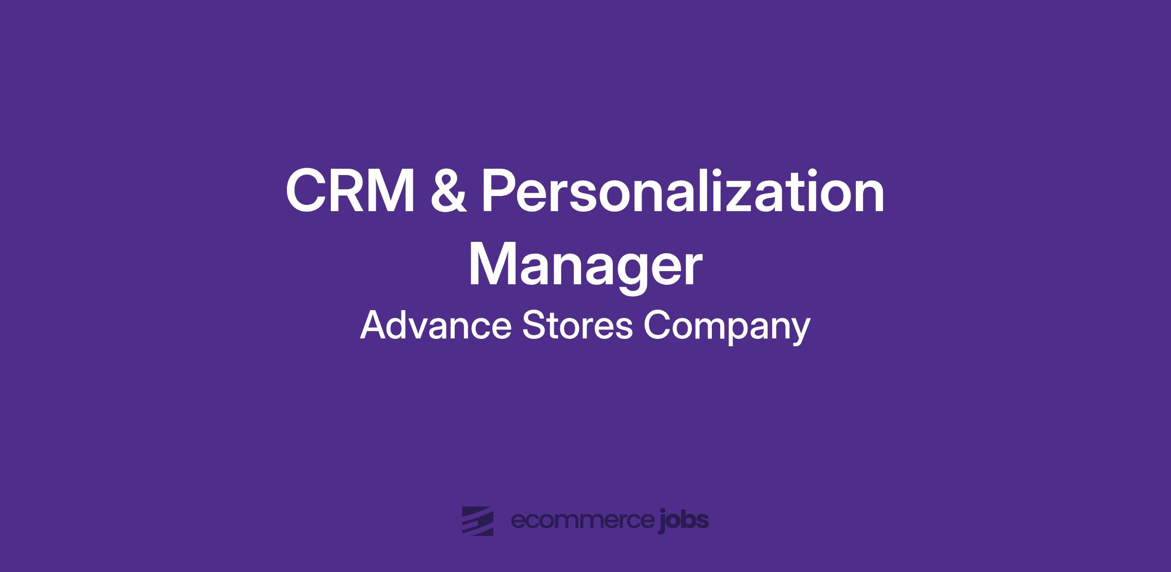 Advance Auto Parts is looking for a CRM & Personalization Manager to lead the strategy & team delivering excellent communication & relationship building journeys for our DIY (B2C) and professional (B2B) customers. This role is critical in deepening our customer relationships, increasing retention and lifetime value via high-impact, data-informed campaigns across email primarily, but also SMS and mobile push. The ideal candidate has a customer-first mindset, a deep understanding of the end-to-end journey, strategic vision for the CRM program, and is ready to bring new approaches to life through a test-and-learn mentality. Good to have attributes include an interest in DIY auto repair, a background in omnichannel retail CRM, and experience working in or closely with Agile product teams. This role will report to the Director of Customer Insights & Loyalty and will manage 2 direct reports at the time of hire.