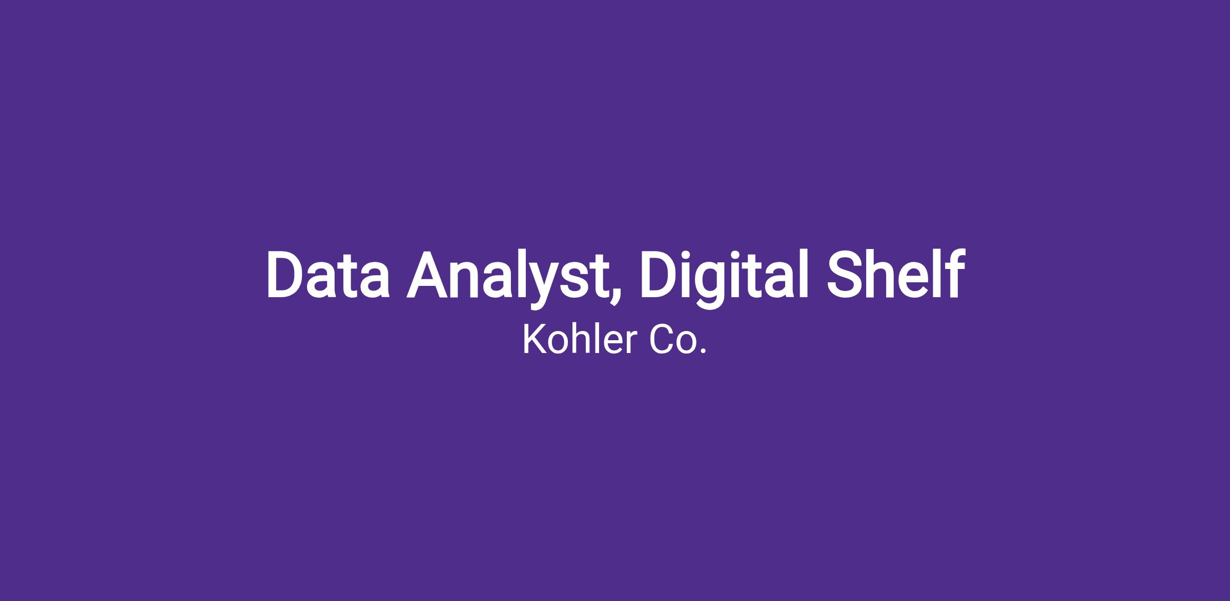 The Data Analyst, Digital Shelf supports Kohler’s digital commerce growth by delivering analytical insights across retail partners, marketplaces, and owned channels that drive better decision-making and stronger brand performance online.