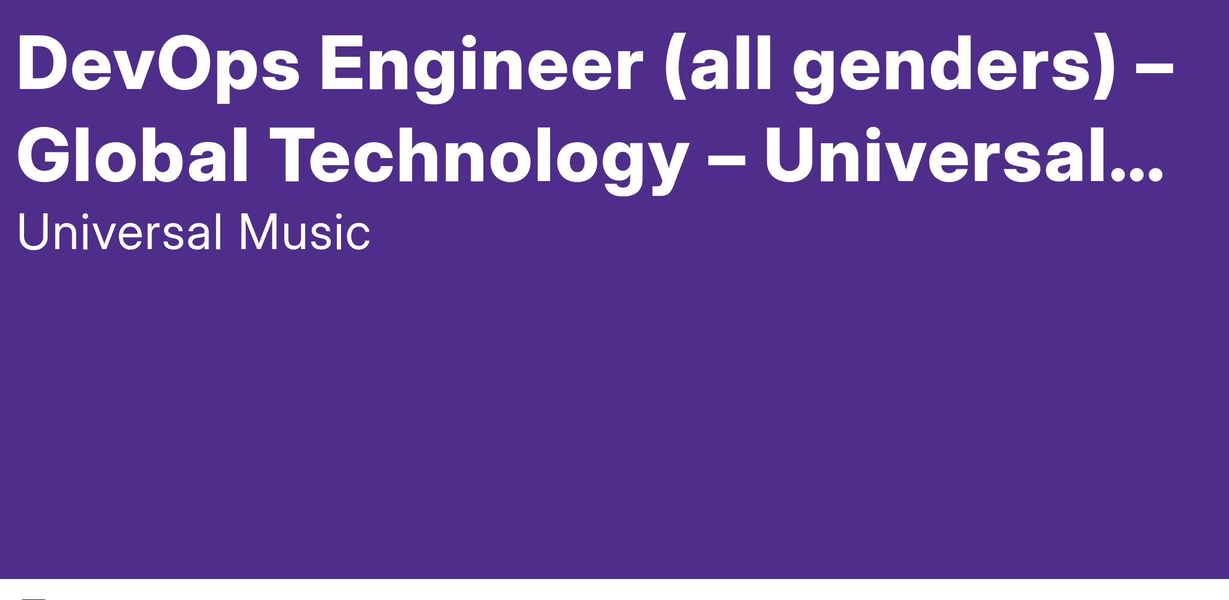 Our passion is music and technology. We operate like a startup and work with the best people in the industry. Our solutions are driving the future of Digital Music, eCommerce & Finance and have significant impact on the success of UMG. We are looking for an eager and collaborative individual to work in our global DevOps team.