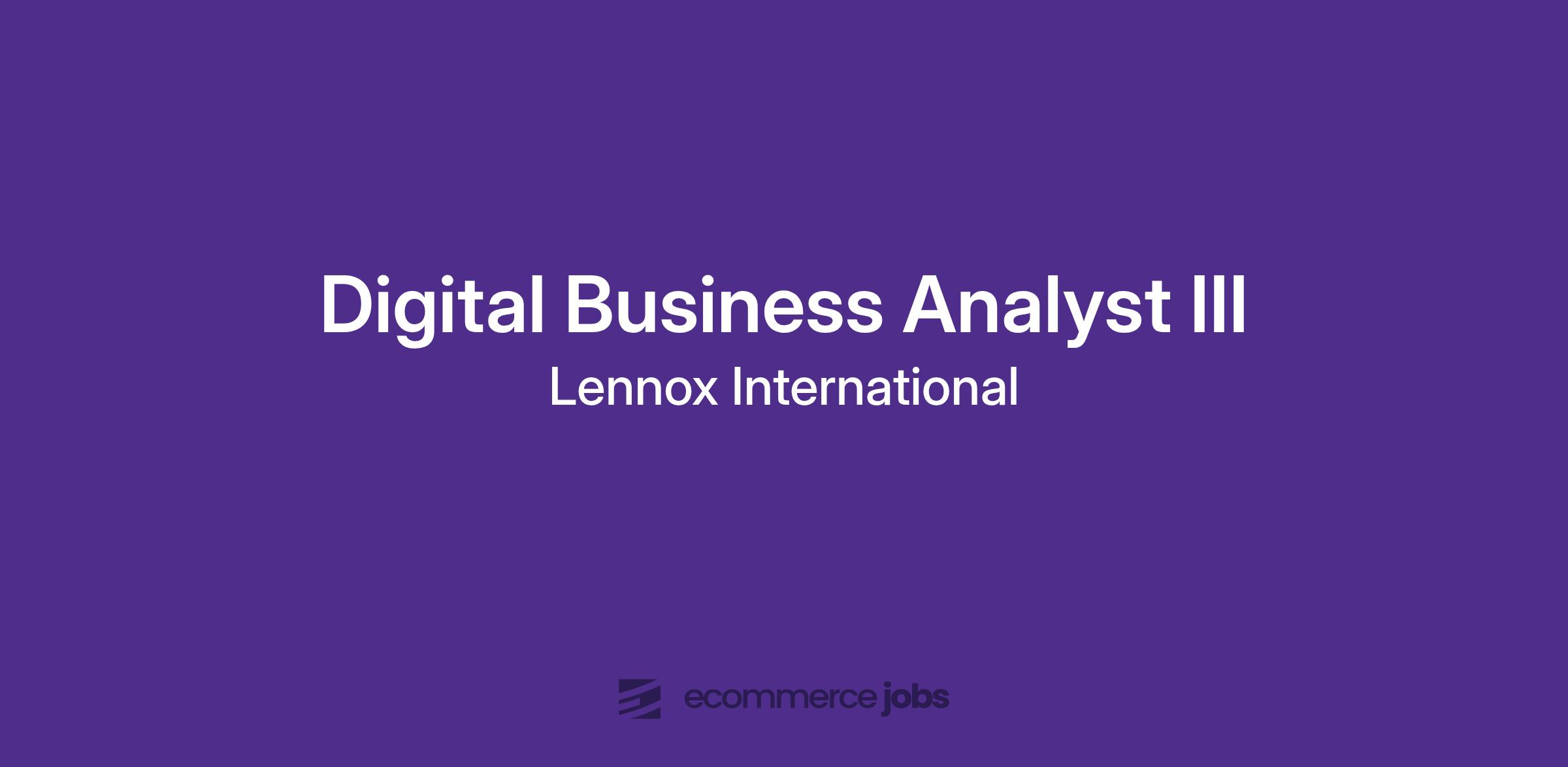 Lennox Industries is a manufacturer and distributor of equipment within the Heating, Ventilation, and Air Conditioning (HVAC) industry. We are guided by our core values of Integrity, Respect, and Excellence. We have an opening for a Digital Business Analyst III.