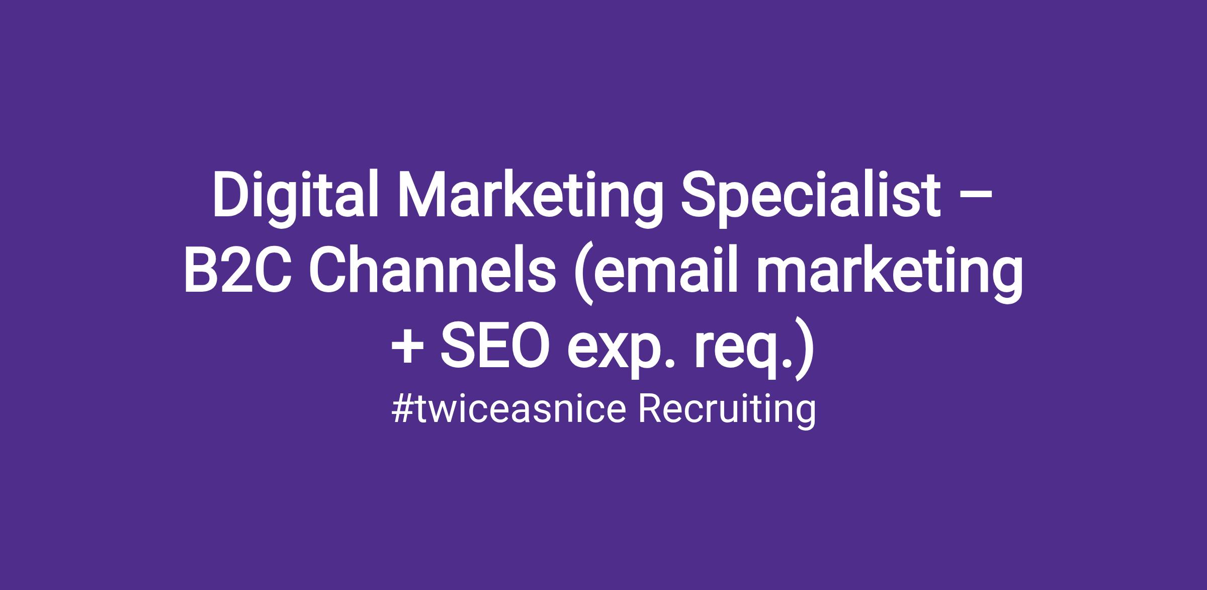Digital Marketing Specialist – B2C Channels (email marketing + SEO exp. req.)
