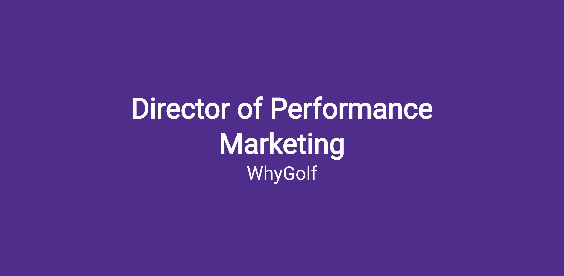 WhyGolf is hiring a Director of Performance Marketing to own revenue-driving paid media across Meta and other performance channels, with creative as the primary lever for scale.