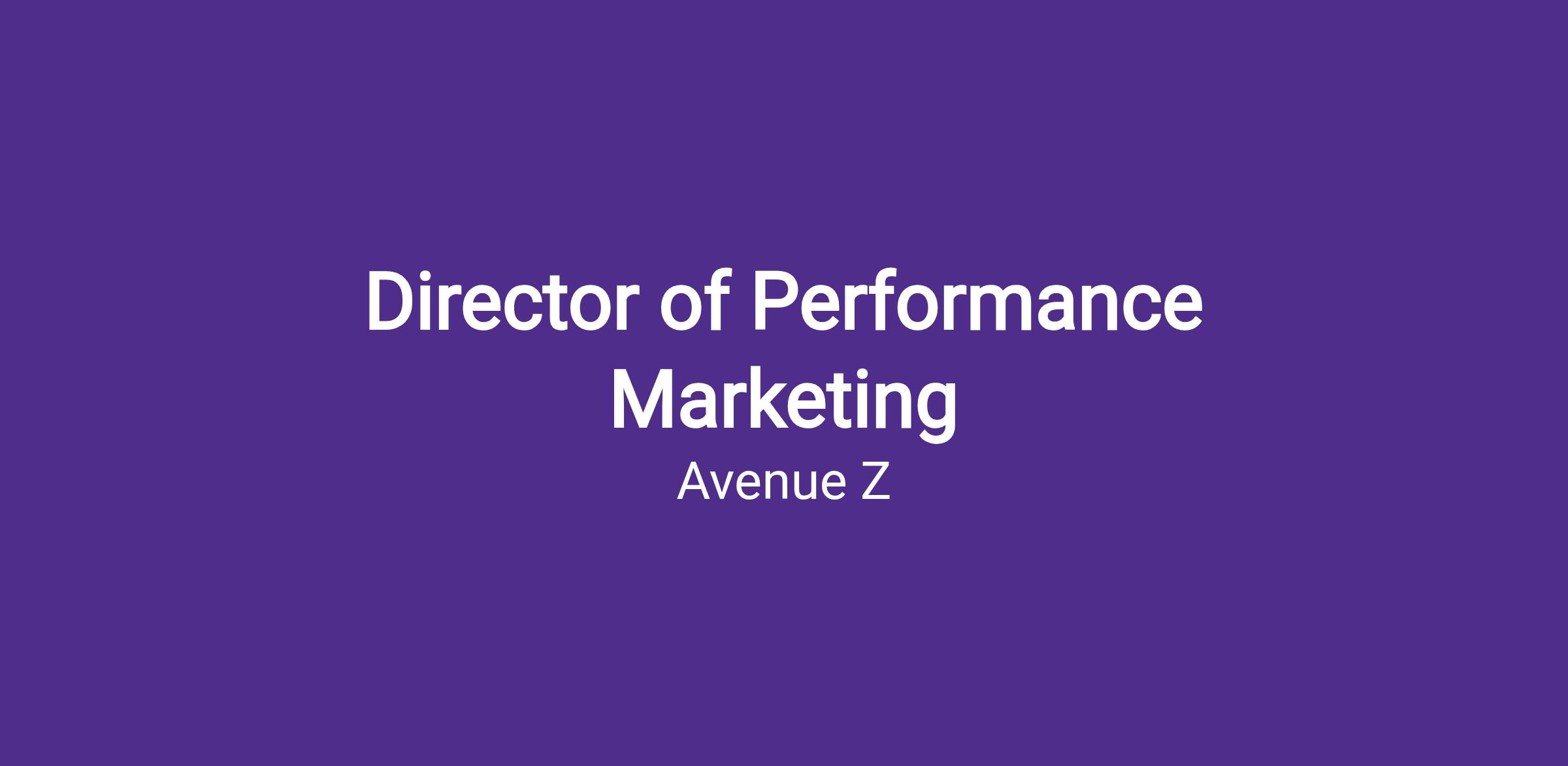 The Director of Performance Marketing leads the strategic vision, portfolio performance, and execution alignment across Avenue Z’s Managed Services division.