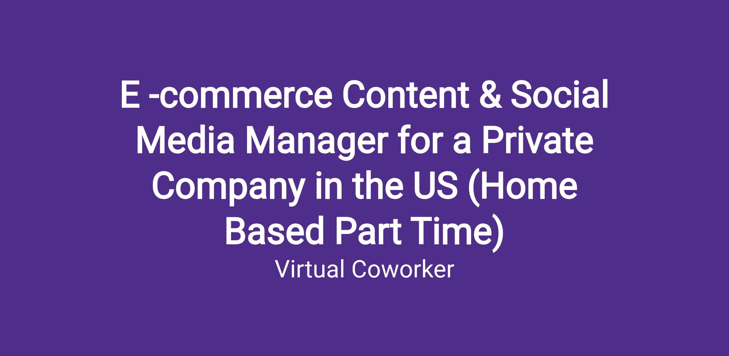 https:\/\/www.linkedin.com\/company\/virtual\-coworker"}],"isMobile":false,"iframe":"true","jobType":"Part time","applyName":"Apply Now!","zsoid":"8208015","FontFamily":"Arial, Helvetica, sans\-serif","jobOtherDetails":[{"fieldLabel":"Job Category","uitype":2,"value":"Social Media Management"},{"fieldLabel":"Work Schedule","uitype":1,"value":"Monday\-Friday, Flexible but should be available in Pacific Time Zone (PST)"},{"fieldLabel":"Industry","uitype":2,"value":"Retail and E\-Commerce"},{"fieldLabel":"City","uitype":1,"value":"Los Angeles"},{"fieldLabel":"State\/Province","uitype":1,"value":"California"},{"fieldLabel":"Zip\/Postal Code","uitype":1,"value":"90001"}],"headerName":"E\-commerce Content & Social Media Manager for a Private Company in the US (Home Based Part Time)","widgetId":"147741000000390320","isJobBoard":"false","userId":"147741000000027001","attachArr":[],"customTemplate":"3","isCandidateLoginEnabled":true,"jobId":"147741000074031624","FontSize":"12","location":"Los Angeles","embedsource":"CareerSite","logoId":"idwop0ece2fcac21a443ba16938fb832bdc3b"}