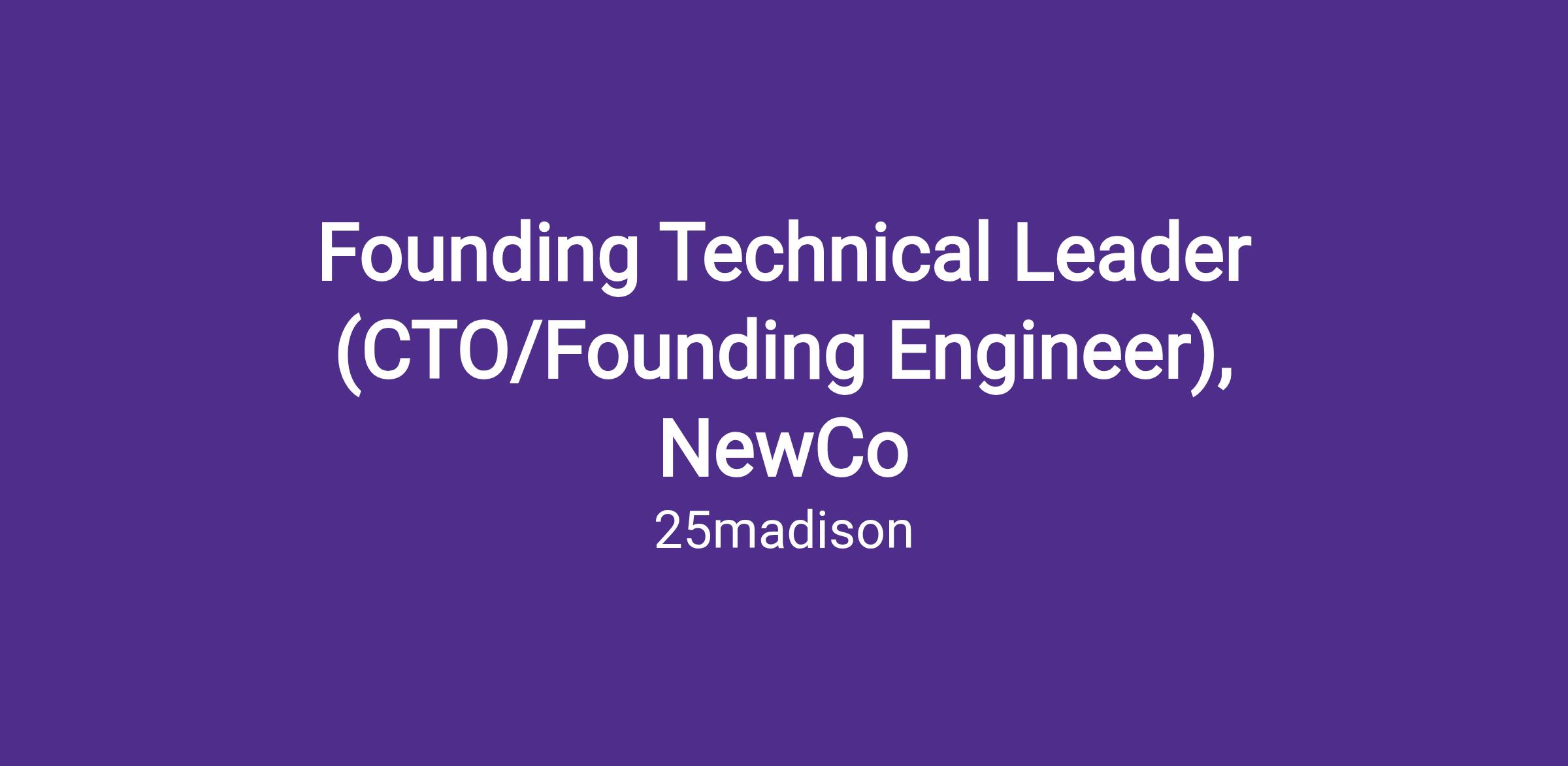 Founding Technical Leader: Head of Engineering / CTO Company: Newco (Stealth)