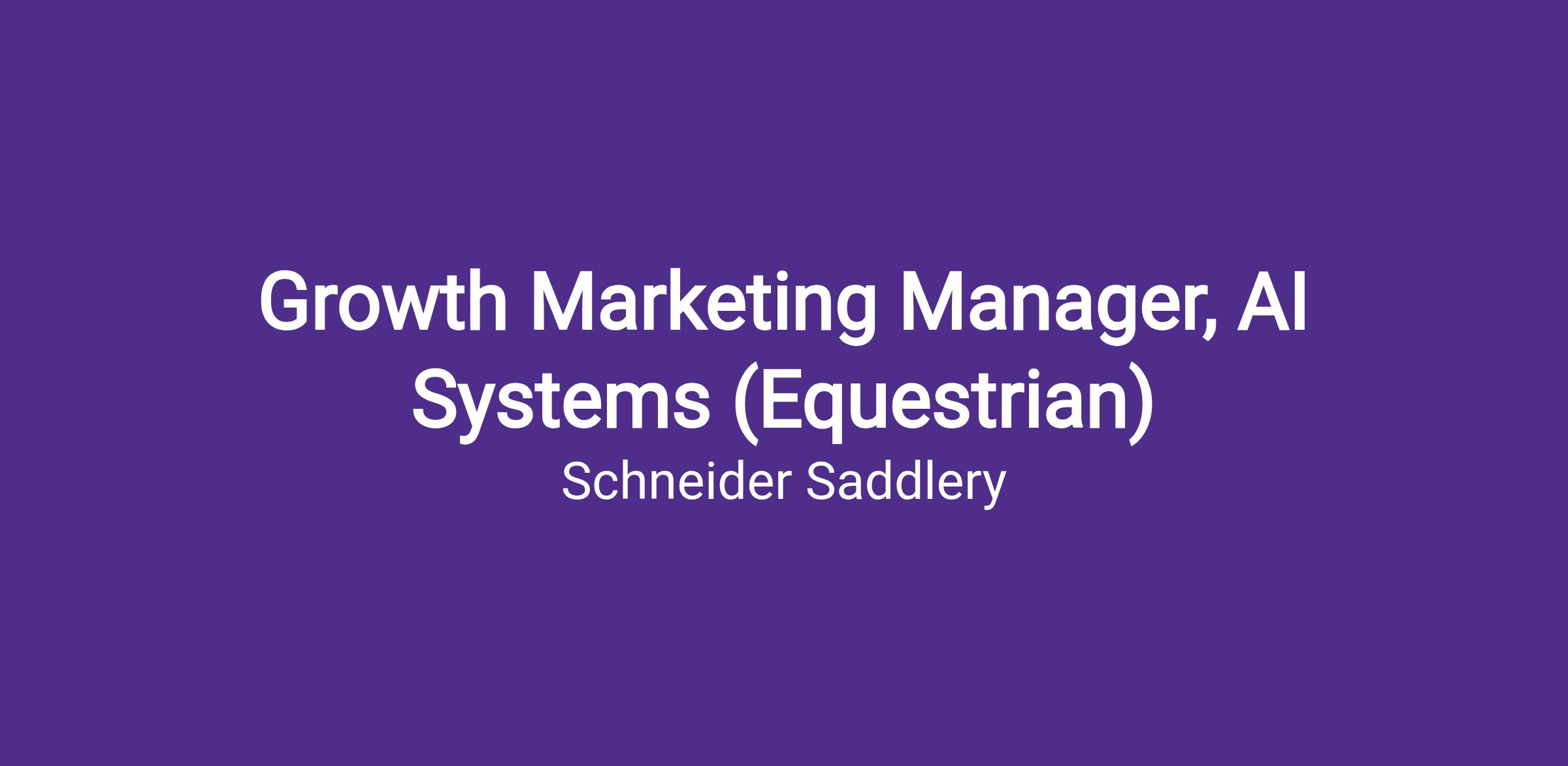 You build AI systems. You run growth engines. And you have a horse in your life. Most companies don't care about that last part. We require it.The Opportunity: Build the AI-Powered Growth Engine for Equestrian E-CommerceSchneiders Saddlery (75-year heritage brand, $12B equestrian market) is hiring a Growth Manager who's a genuine AI BUILDER -- not a prompt tourist -- who also happens to understand horses.We're not looking for someone who "uses ChatGPT daily." We want someone who:- Has BUILT production AI systems, automations, or custom applications