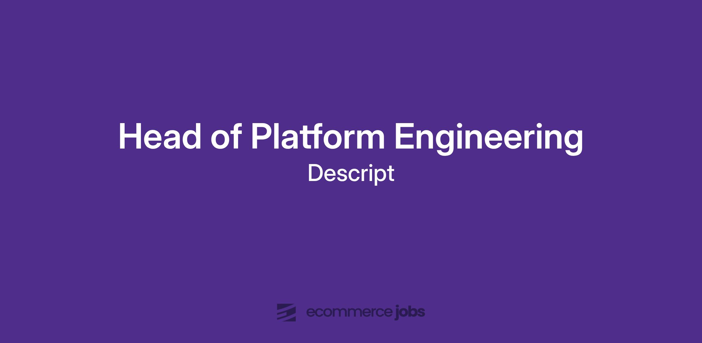 We are seeking a Head of Platform Engineering to lead and scale our Platform organization. This organization at Descript is central to empowering our engineering teams to build and deliver products efficiently and effectively. Operating as an internal product team, the Platform group focuses on providing tools, infrastructure, and services that enable our engineers to deliver exceptional products to our users.