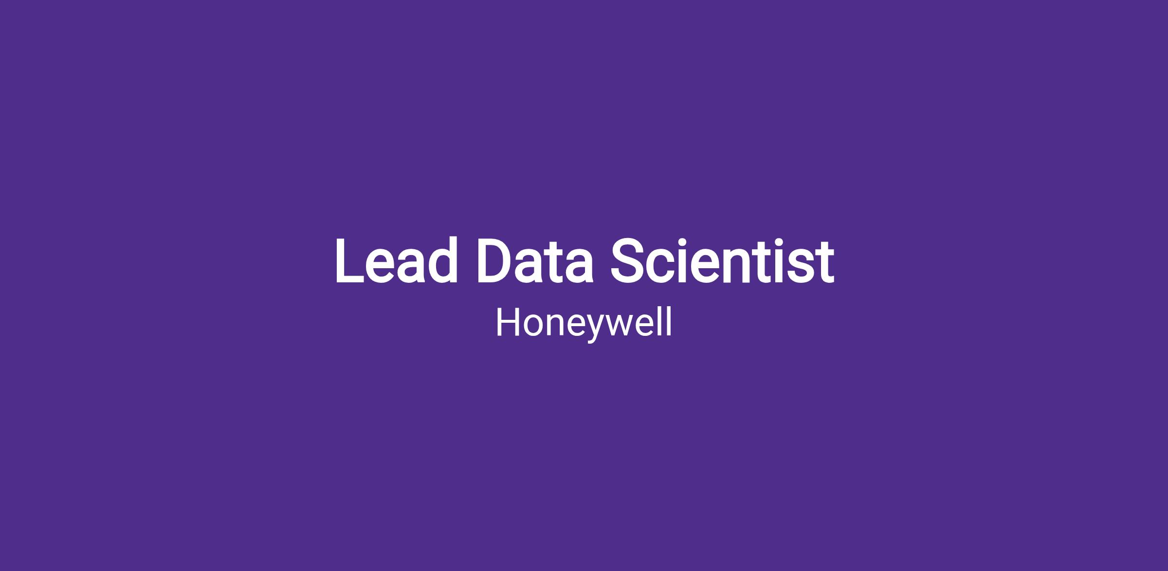Lead Data Scientist for Honeywell International, Inc. (Atlanta, GA)