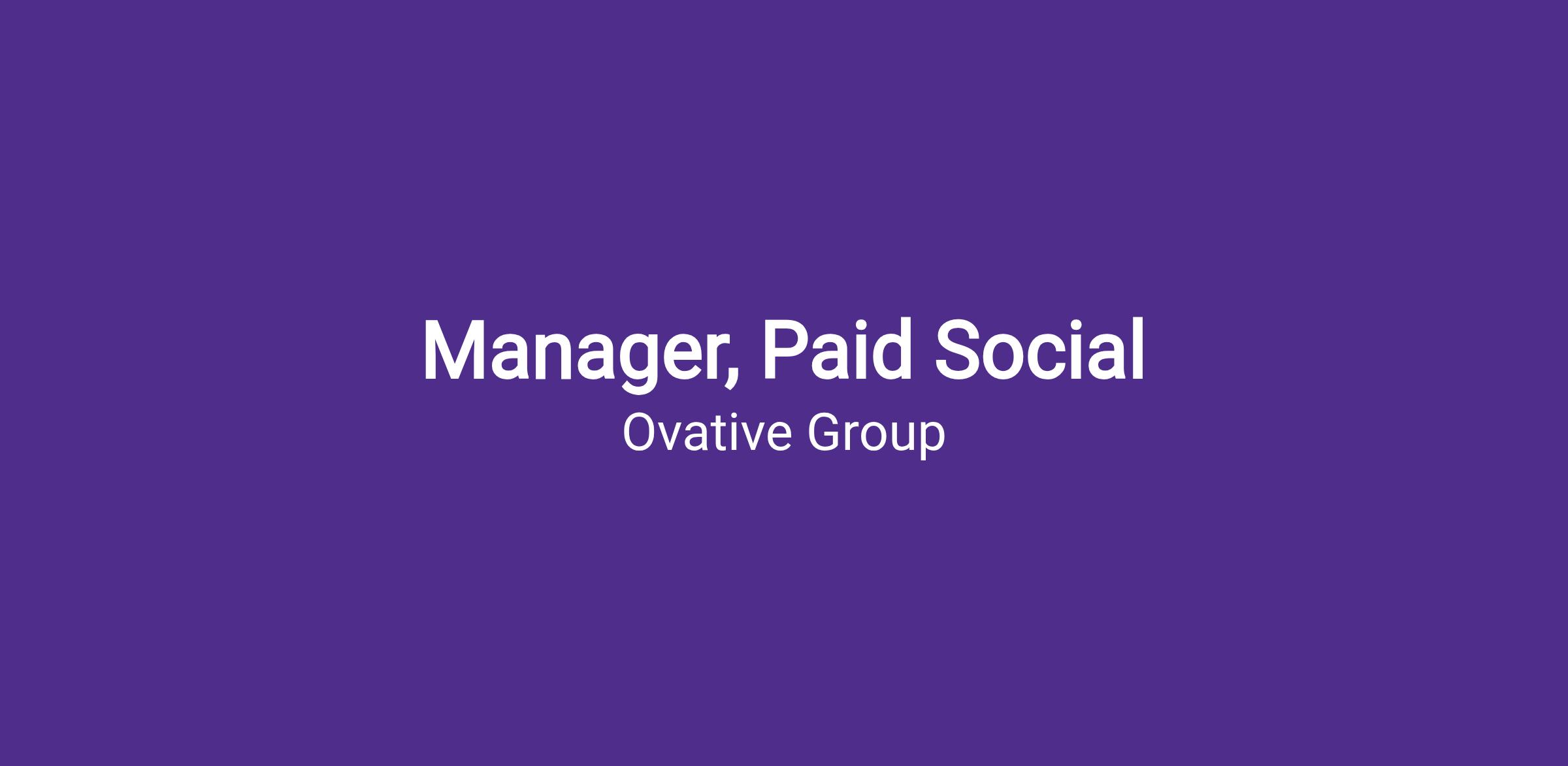 The Ovative Group Manager, Paid Social position is an opportunity for an experienced candidate to take the next step in a leadership role at a fast-growing company that has the highest standards for talent, fun, and client success. The ideal candidate demonstrates great critical thinking, sophisticated understanding of the digital media landscape, phenomenal client management, and inspiring team leadership. Their role will play a pivotal role in helping Ovative continue our journey toward measuring and optimizing paid media to the true enterprise impact, not solely ecommerce impacts.
