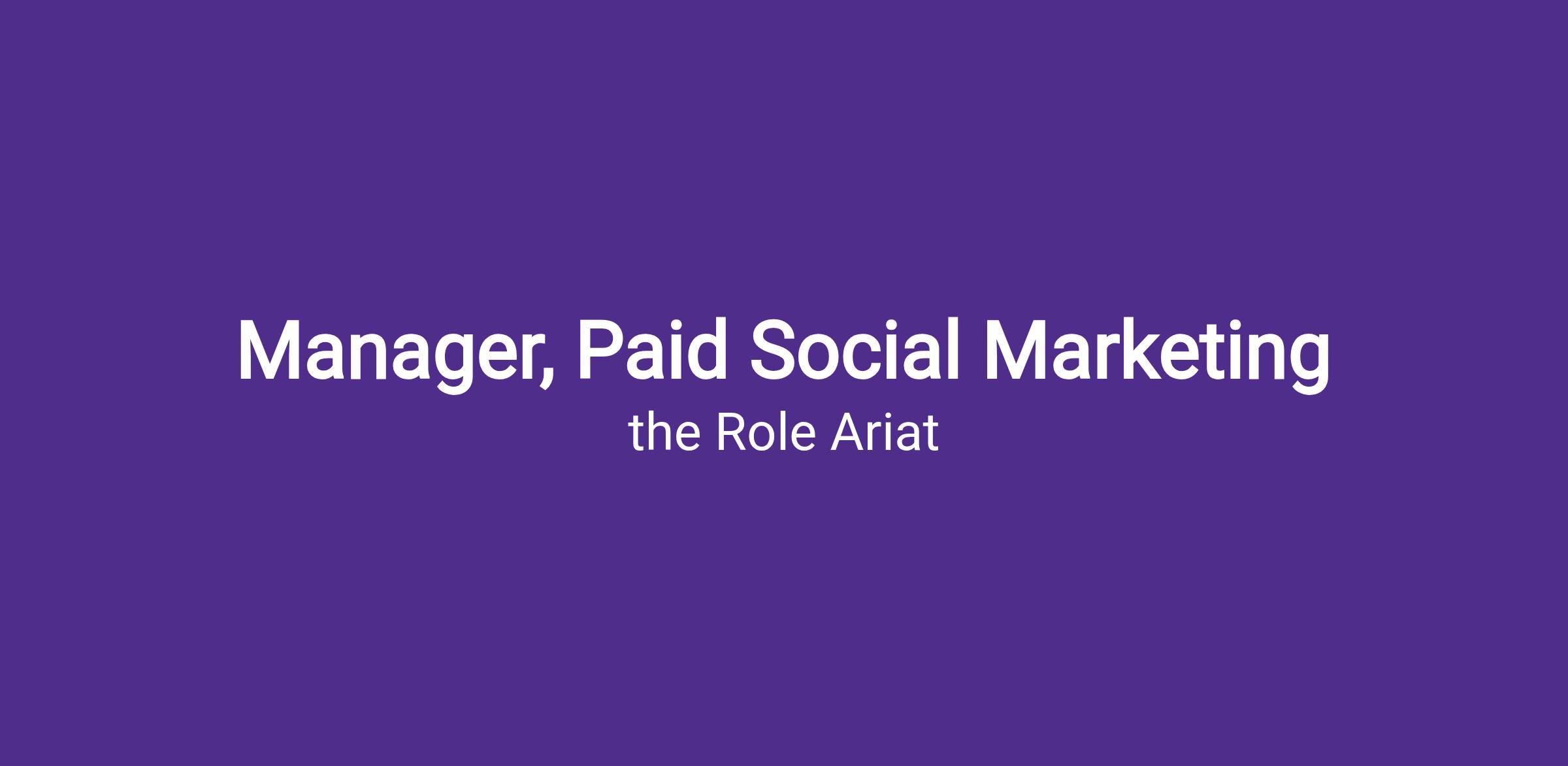 Ariat is seeking a Manager, Paid Social Marketing to join our Digital Marketing team. This role will be responsible for the execution, ongoing optimization, and performance reporting of paid social campaigns across Meta (Facebook/Instagram), TikTok, and Pinterest platforms targeting multiple consumer segments.