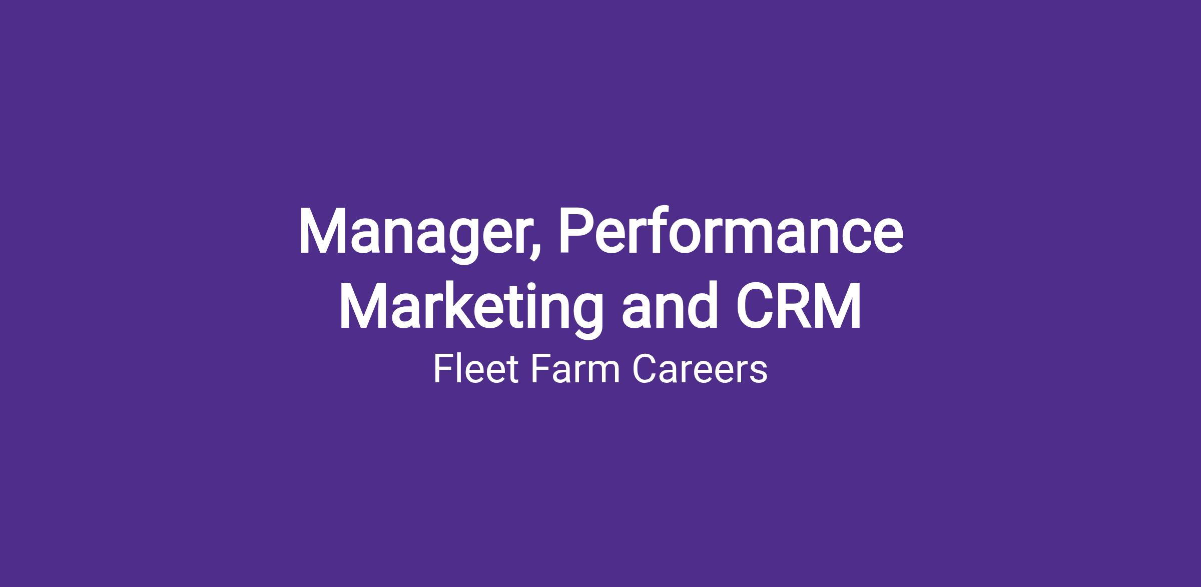Fleet Farm is seeking a data-driven Performance Marketing & CRM Manager to execute and optimize customer marketing programs across paid and owned channels.