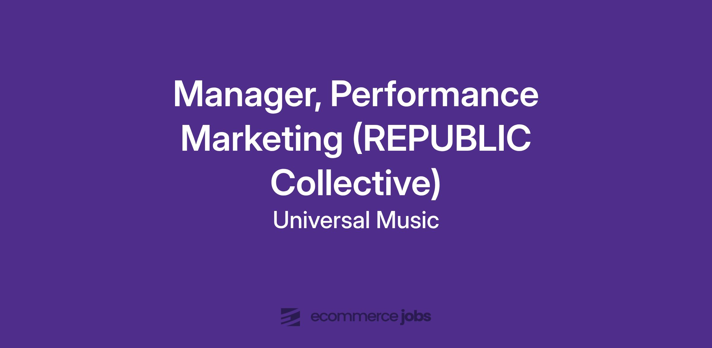 Universal Music Group is seeking a Manager, Performance Marketing to support REPUBLIC’S frontline D2C roster. This role will report into the Global Media Team but will be deeply embedded into REPUBLIC’s operations and based out of our New York offices. This is a permanent, full-time position working in a cross-functional team of D2C & digital marketing experts. You’ll drive always-on paid media efforts that maximize D2C revenue across frontline stores.