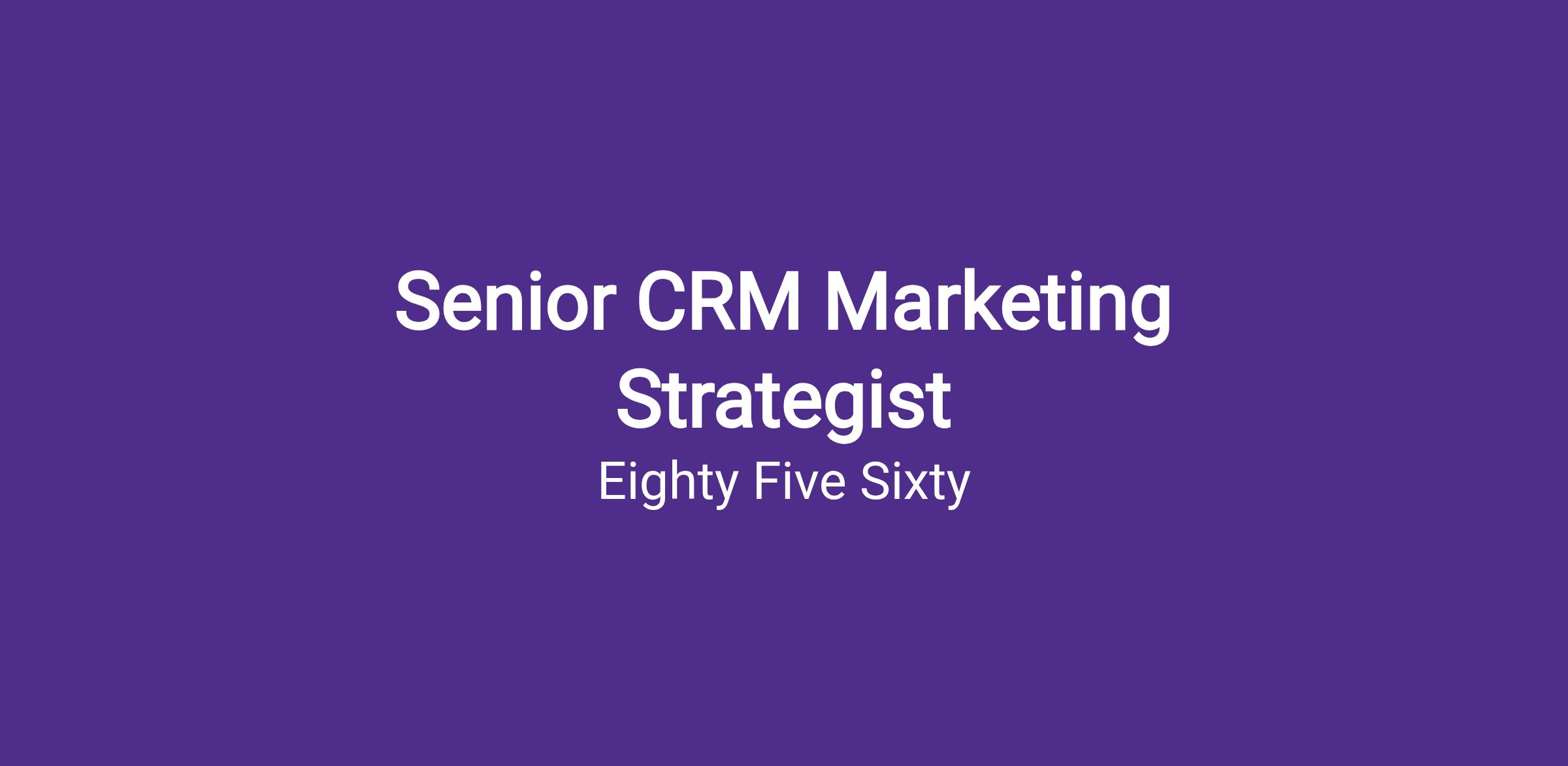 85SIXTY is seeking a Senior CRM Marketing Strategist to lead the strategy, execution, and optimization of lifecycle marketing programs across email, SMS, and emerging customer engagement channels, specifically supporting projects in the Insider One platform. This role bridges strategic planning with hands-on execution, helping clients transform customer data into meaningful, personalized marketing experiences.