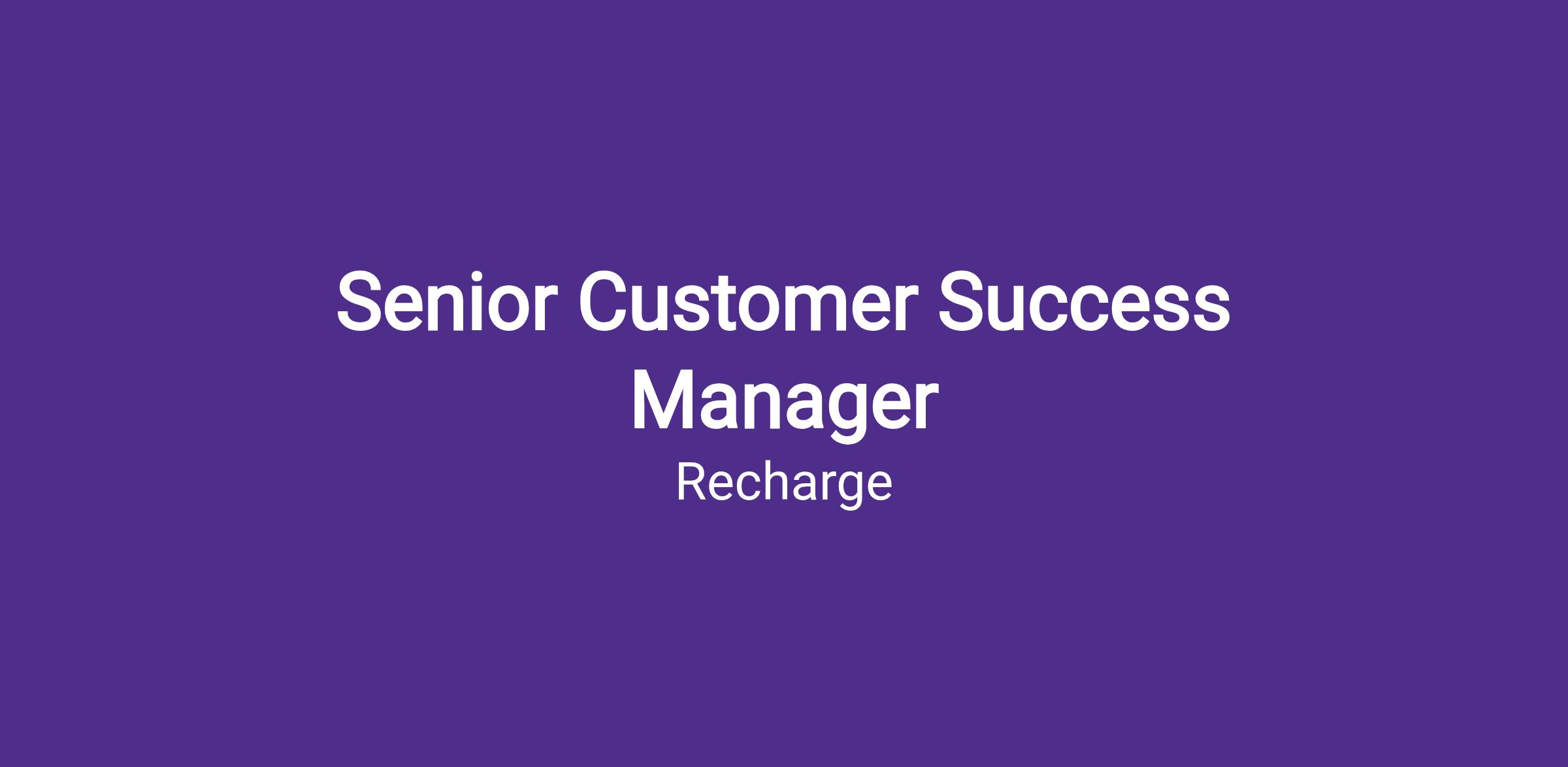 Recharge is looking for an experienced Senior Customer Success Manager to support our top merchants with consultative guidance, product expertise, and strategic growth recommendations. In this high-impact role, you’ll manage a portfolio of top-tier brands, build trusted relationships with key decision-makers, and serve as a strategic advisor focused on driving measurable outcomes.