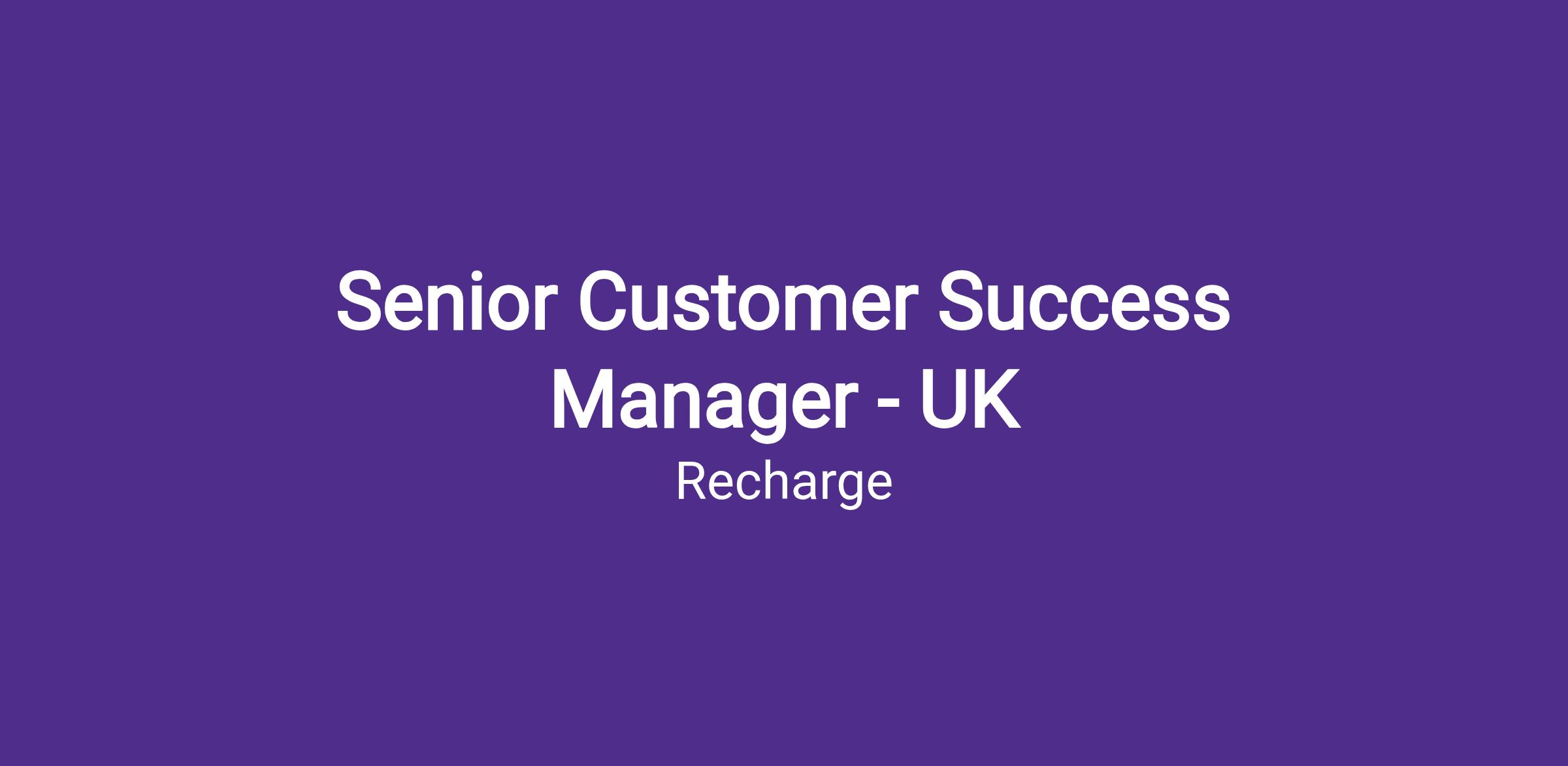 Recharge is looking for an experienced Senior Customer Success Manager to support our EMEA merchants with consultative guidance, product expertise, and growth recommendations. The Senior Customer Success Manager is critical to the success of our business and by working with a portfolio of merchants, you will make an immediate impact by building long term relationships with key stakeholders and helping them to drive business results utilizing subscriptions.