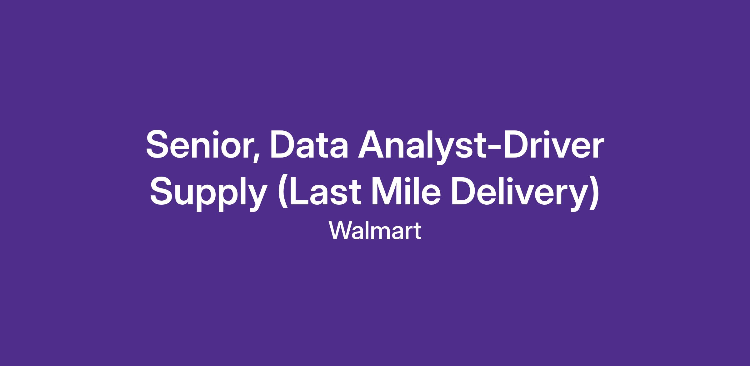 As a Senior Data Analyst, Driver Supply within Walmart’s Last Mile Delivery (LMD) organization, you will support the operational execution of driver availability and supply planning across OnDemand and Scheduled delivery channels. This role is focused on translating strategic plans into actionable processes, ensuring consistent delivery performance, and collaborating across teams to meet customer expectations with speed and reliability.
