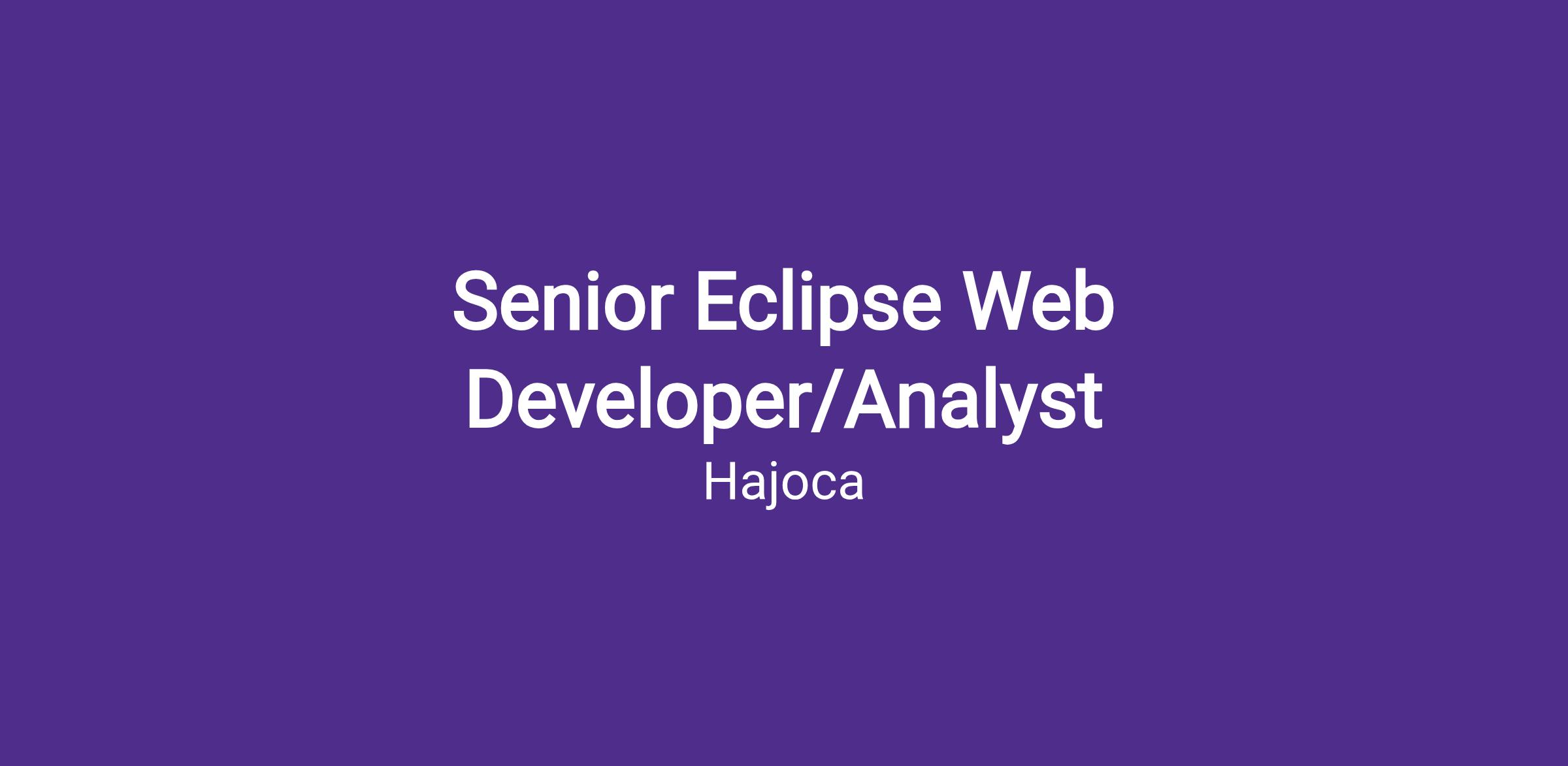 Are you skilled at solving complex technical issues? Do you enjoy designing, developing, and testing software? Are you a leader with strong analytical skills? If so, then we’d like you to join our dedicated team as a Senior Eclipse Web Developer/Analyst.