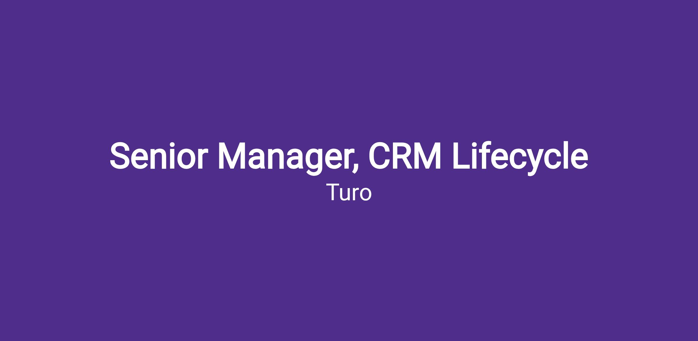 As the Senior Manager - CRM, you will lead Turo’s customer marketing strategy across the customer lifecycle globally. You’ll drive business growth through activation, retention and reactivation. You will also grow customer engagement through astute deployment of promotional initiatives and incentives. You will pioneer new customer marketing initiatives such as referral and loyalty programs.