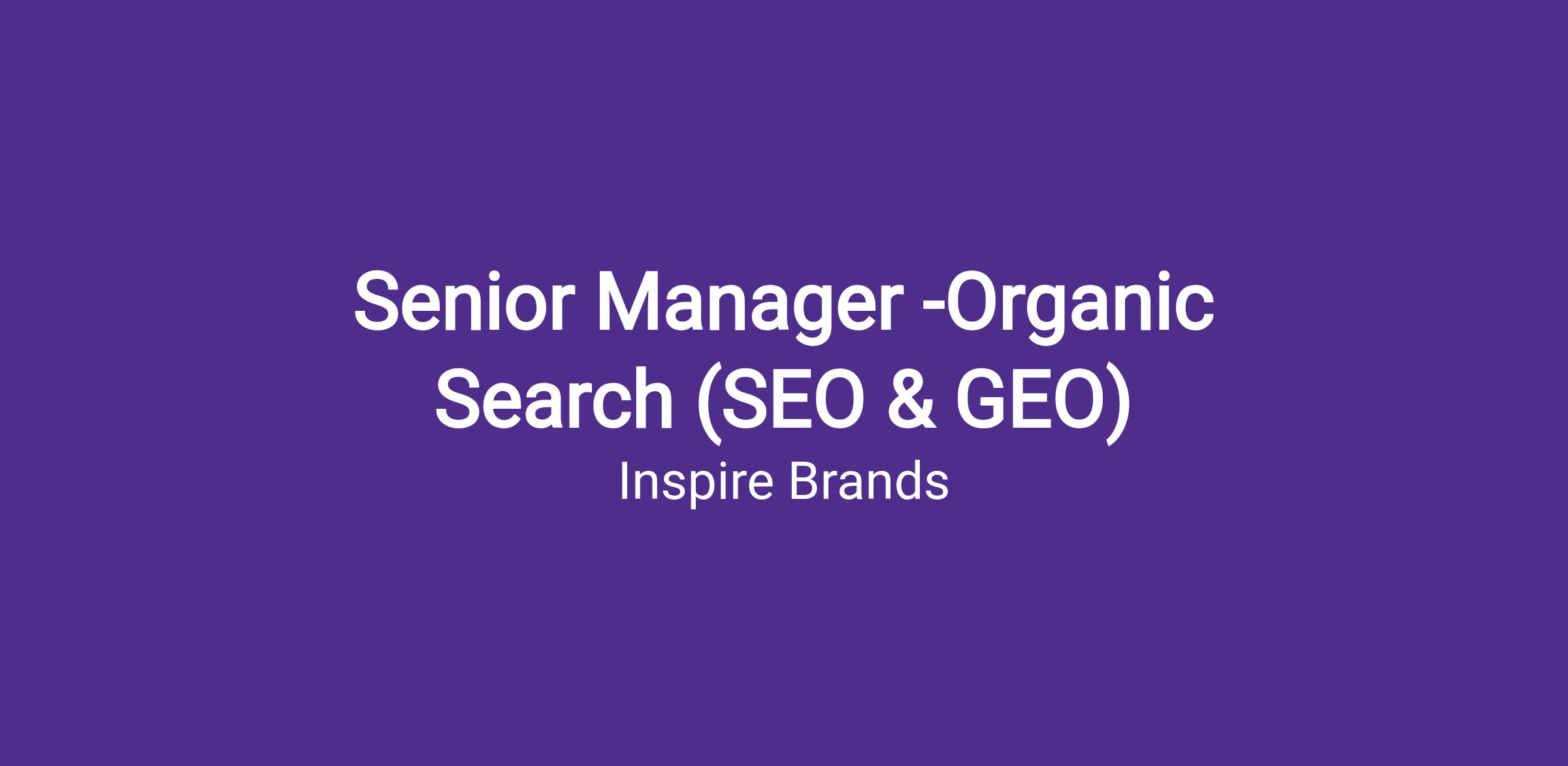 The Senior Manager of Organic Search will lead the strategy, development, and execution of Inspire Brands’ enterprise Organic Search program across all brands. This role owns the end-to-end organic search growth channel, spanning traditional SEO as well as emerging Generative Engine Optimization (GEO), with a primary goal of ensuring Inspire runs an industry leading program as search behavior and platforms evolve through AI-driven experiences.