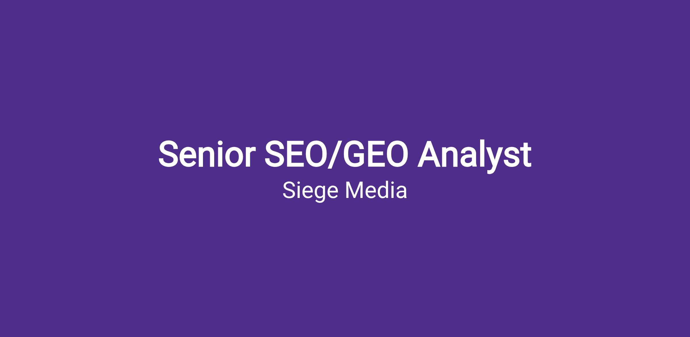 Siege Media is a growing and remote-first organic growth agency! We are nationally recognized on Inc.’s Best Workplaces list and Inc. 5000 list, highlighting the 5000 fastest-growing private companies. Interested in joining the Siege team? We currently have a spot open for a talented Senior SEO/GEO Analyst to help us continue to deliver great content for our world-class clients.
