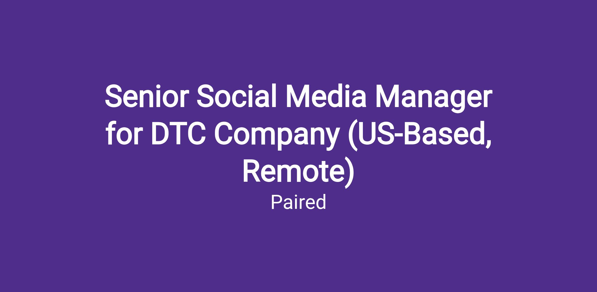 Senior Social Media Manager for DTC Company (US-Based, Remote)
