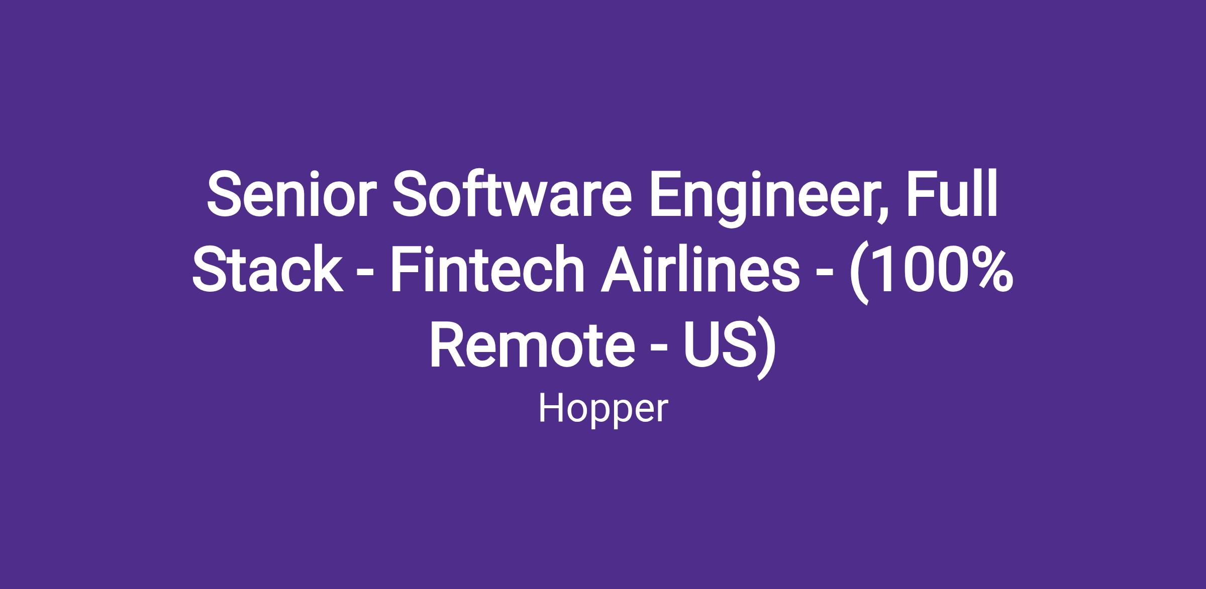 We're looking for a Senior Full-Stack Engineer to join us in building the future of travel fintech for our HTS APAC and Enterprise airline partners.