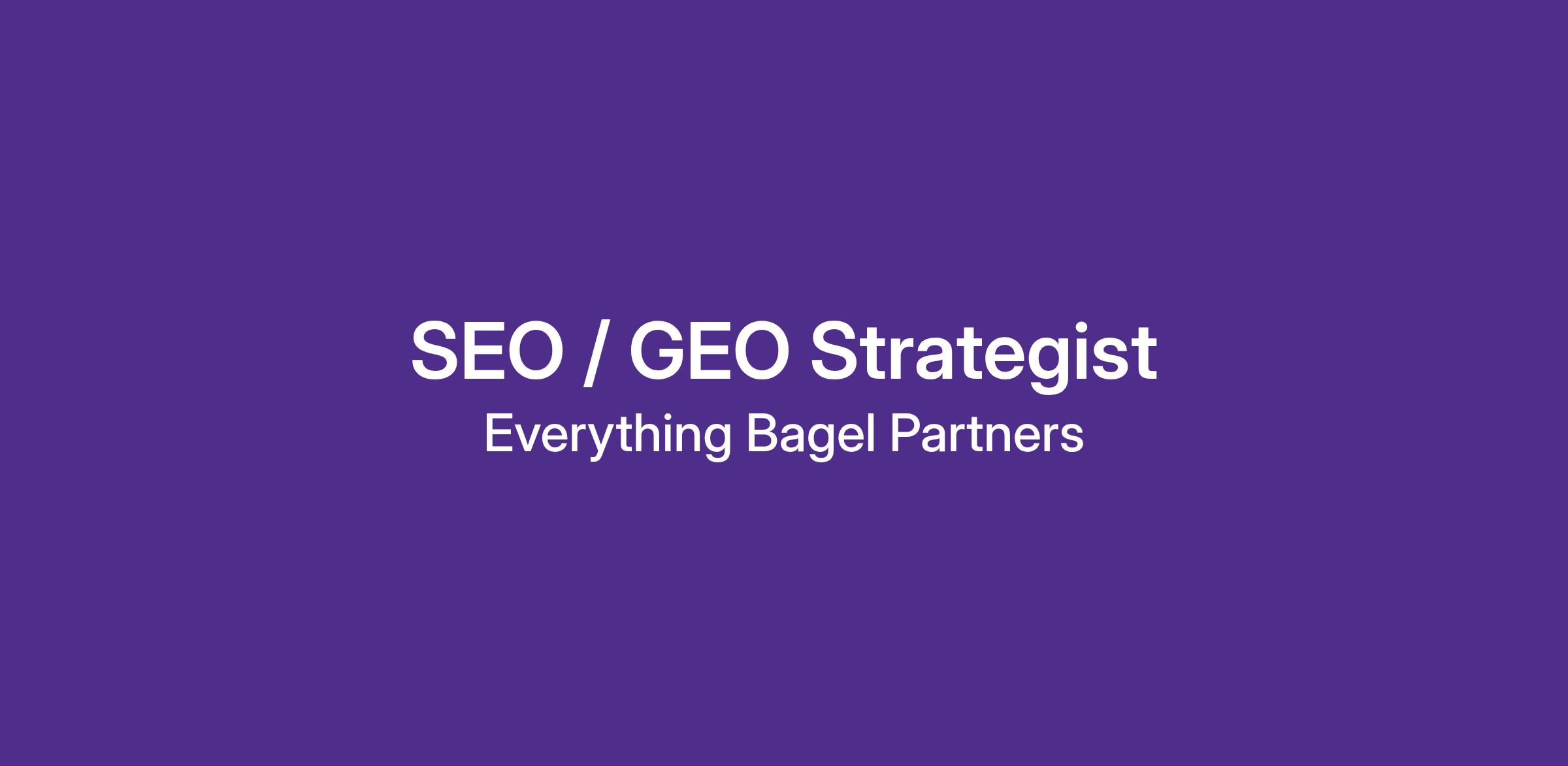 Everything Bagel Partners is looking for a Part-Time SEO / GEO Strategist with deep experience in CPG and DTC brands to help us grow organic demand across traditional search and emerging generative search platforms (Google AI Overviews, ChatGPT, Perplexity, etc.).