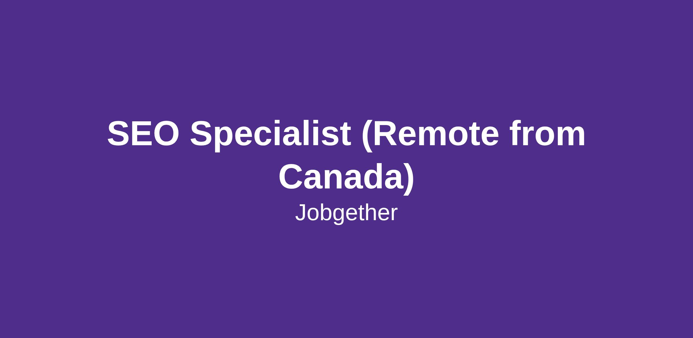 SEO Specialist (Remote from Canada)