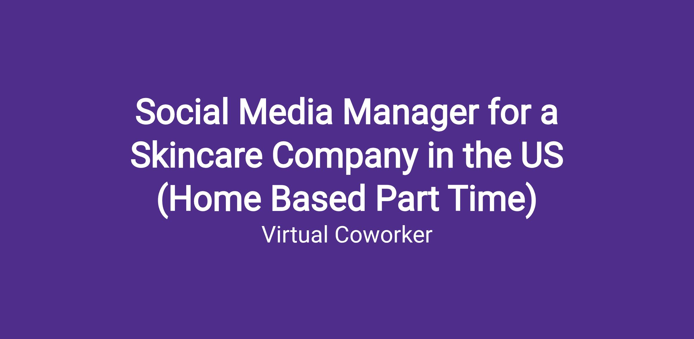 https:\/\/www.linkedin.com\/company\/virtual\-coworker"}],"isMobile":false,"iframe":"true","jobType":"Part time","applyName":"Apply Now!","zsoid":"8208015","FontFamily":"Arial, Helvetica, sans\-serif","jobOtherDetails":[{"fieldLabel":"Job Category","uitype":2,"value":"Social Media Management"},{"fieldLabel":"Work Schedule","uitype":1,"value":"Monday \- Friday \- Between 9:30AM\-2PM"},{"fieldLabel":"Hours Per Day","uitype":2,"value":"Part Time â 4 hours per day"},{"fieldLabel":"Industry","uitype":2,"value":"Health and Wellness"},{"fieldLabel":"Client Location","uitype":2,"value":"USA"},{"fieldLabel":"Work Location","uitype":1,"value":"Home Based \- Philippines"},{"fieldLabel":"City","uitype":1,"value":"Greensboro"},{"fieldLabel":"State\/Province","uitype":1,"value":"North carolina"},{"fieldLabel":"Zip\/Postal Code","uitype":1,"value":"27406\-9726"}],"headerName":"Social Media Manager for a Skincare Company in the US (Home Based Part Time)","widgetId":"147741000000390320","isJobBoard":"false","userId":"147741000000027001","attachArr":[],"customTemplate":"3","isCandidateLoginEnabled":true,"jobId":"147741000071496031","FontSize":"12","googleIndexUrl":"https:\/\/virtualcoworker.zohorecruit.com\/recruit\/ViewJob.na?digest=mYhLPVmsdoeEYzvtj4AKbUVU1@Im@RQJ9cB42y@WlbE\-&embedsource=Google","location":"Greensboro","embedsource":"CareerSite","logoId":"idwop0ece2fcac21a443ba16938fb832bdc3b"}