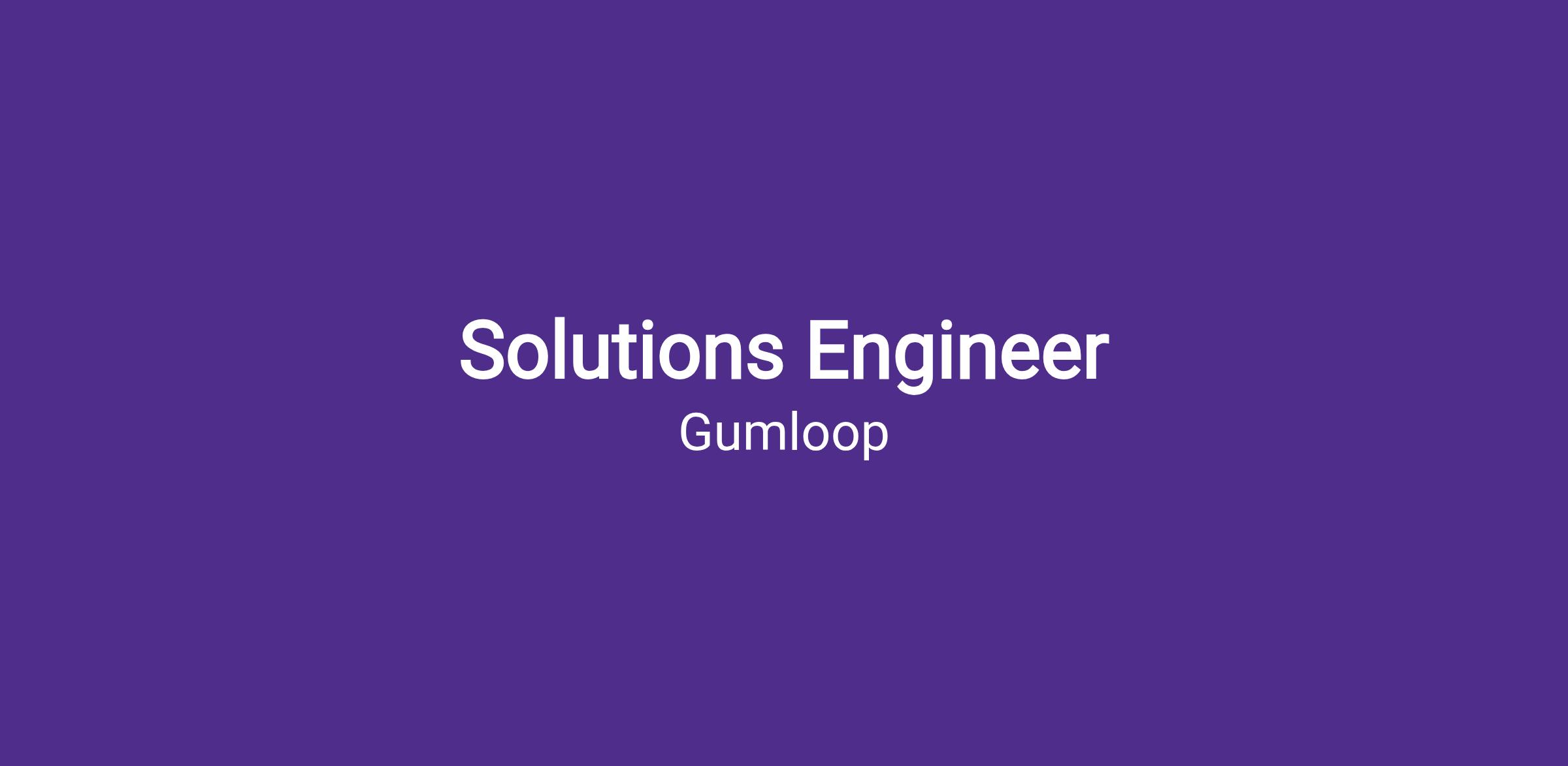 As a Solutions Engineer at Gumloop, you'll work directly with customers to turn their highest-value automation opportunities into production reality on our platform. You'll lead pilots and initial onboarding for new customers, partner with account teams to drive adoption and expansion, and serve as the technical authority from first conversation through scale. This is a hands-on, full-lifecycle role — you own outcomes, not just demos.