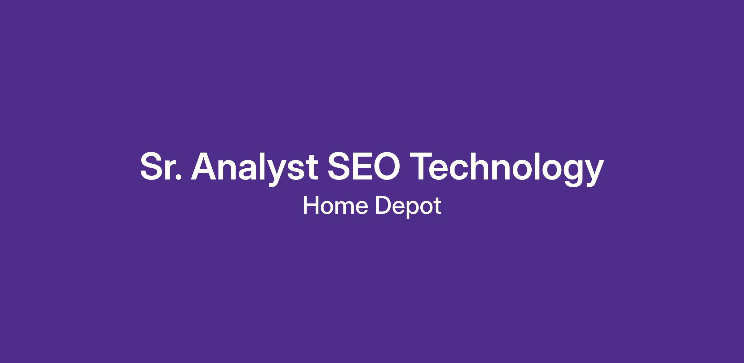 The Sr. Analyst SEO Technology is responsible for driving organic growth and discoverability of site content and experiences on homedepot.com.