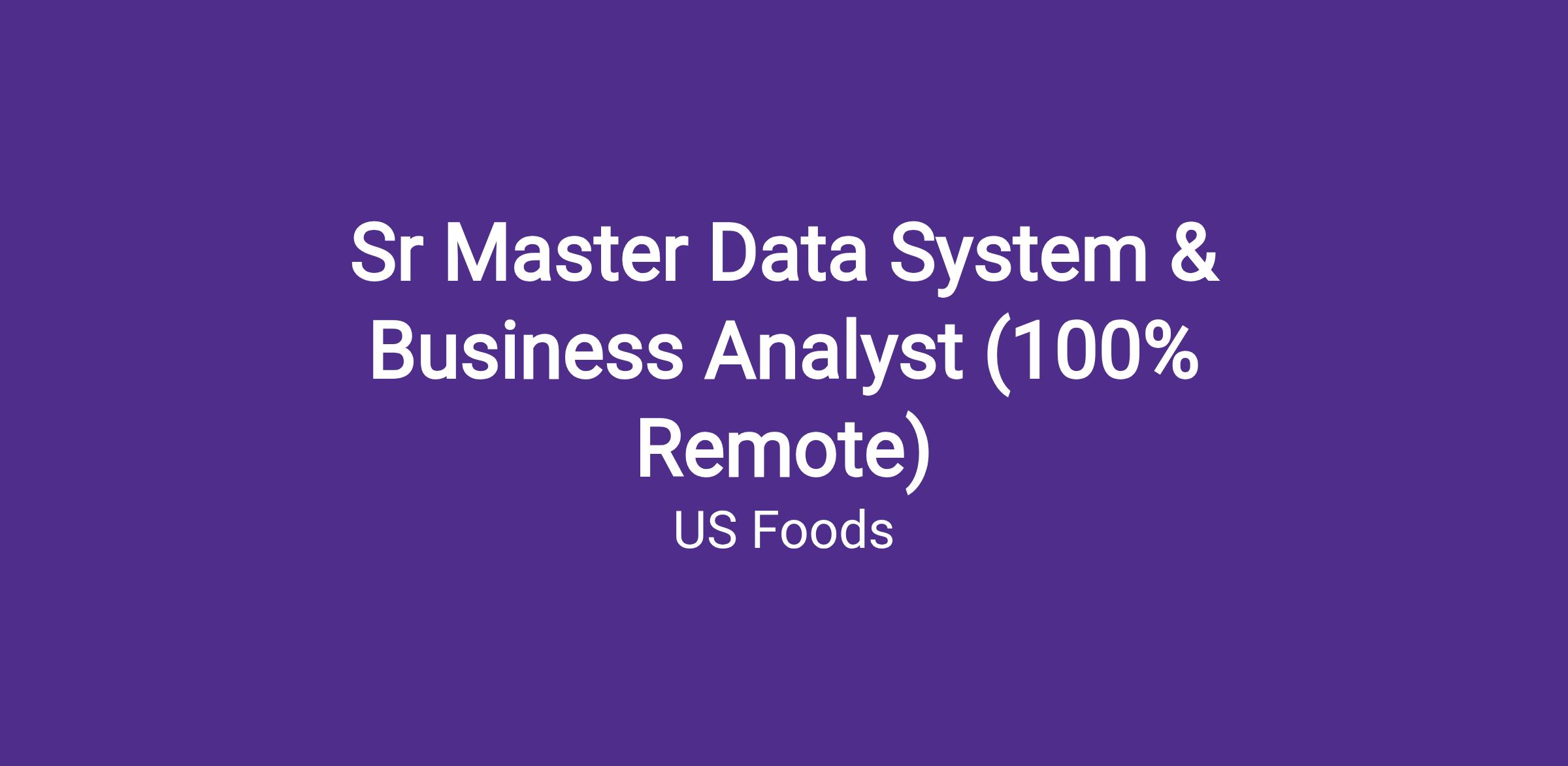 The Sr Master Data Business and System Analyst will be responsible for driving the product strategy and prioritization for master data solutions, including Product Information Management (PIM) systems, to enhance business operations and data accuracy. Acting as the key liaison between business and development teams, ensuring clear communication of requirements and needs, and facilitates system enhancements, and promotes process improvements. This role reviews, analyzes, develops and evaluates Master Data business processes and metrics; performs root cause analyses of technical interface issues and process breakdowns to formulate business process improvements. The Business Analyst will review and optimize Master Data business processes, perform root cause analyses, and document existing processes to identify and implement best practices. Additionally, this role will lead initiatives to track key performance indicators, represent US Foods in GS1 initiatives, and collaborate with Compliance Analysts to uphold data governance and quality standards. By partnering with IT, Category Management, and Marketing, the Sr Master Data Business and System Analyst will ensure alignment with data regulations and drive process improvements to meet overall metric goals.The work for this position is completely remote anywhere in the United States except Hawaii or United States Territories.