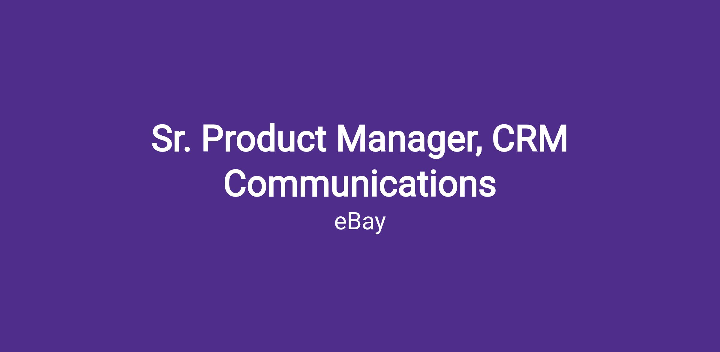 We are currently seeking a highly driven and proactive Senior Product Manager to join our Conversion Programs team at eBay. In this critical role, you will be at the forefront of crafting customer experiences through offer communications. Your mission will be to drive business growth and customer improvements by innovating and enhancing the multi-channel communications portfolio across Email, Push Notifications, and Native Hub Notifications. You will contribute towards revenue targets, long-term strategy, roadmap, and end-to-end execution for this multimillion dollar portfolio! This is a highly cross functional role, where you will get to influence and collaborate with partners across eBay.