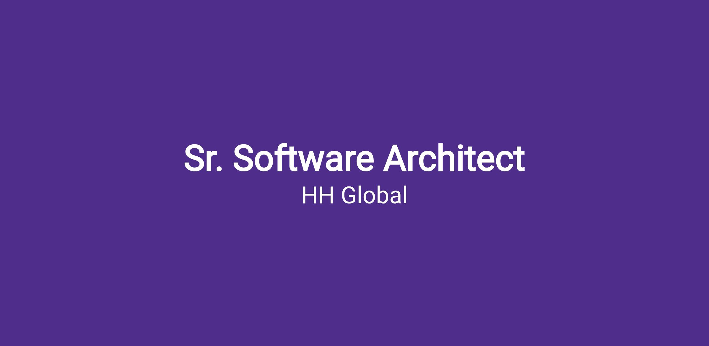 We are seeking a Sr. Software Architect to lead enterprise-wide architecture strategy and product modernization initiatives across HH Global’s software platforms. This role is responsible for defining and governing architectural standards, consolidation of legacy systems, and guiding the design of a forward-thinking architecture that includes the pragmatic use of AI agents for productivity, automation, and innovation. The position reports to the Sr. VP of Engineering and requires strong technical leadership and cross-functional influence with growth potential for building a small but powerful team of architects.
