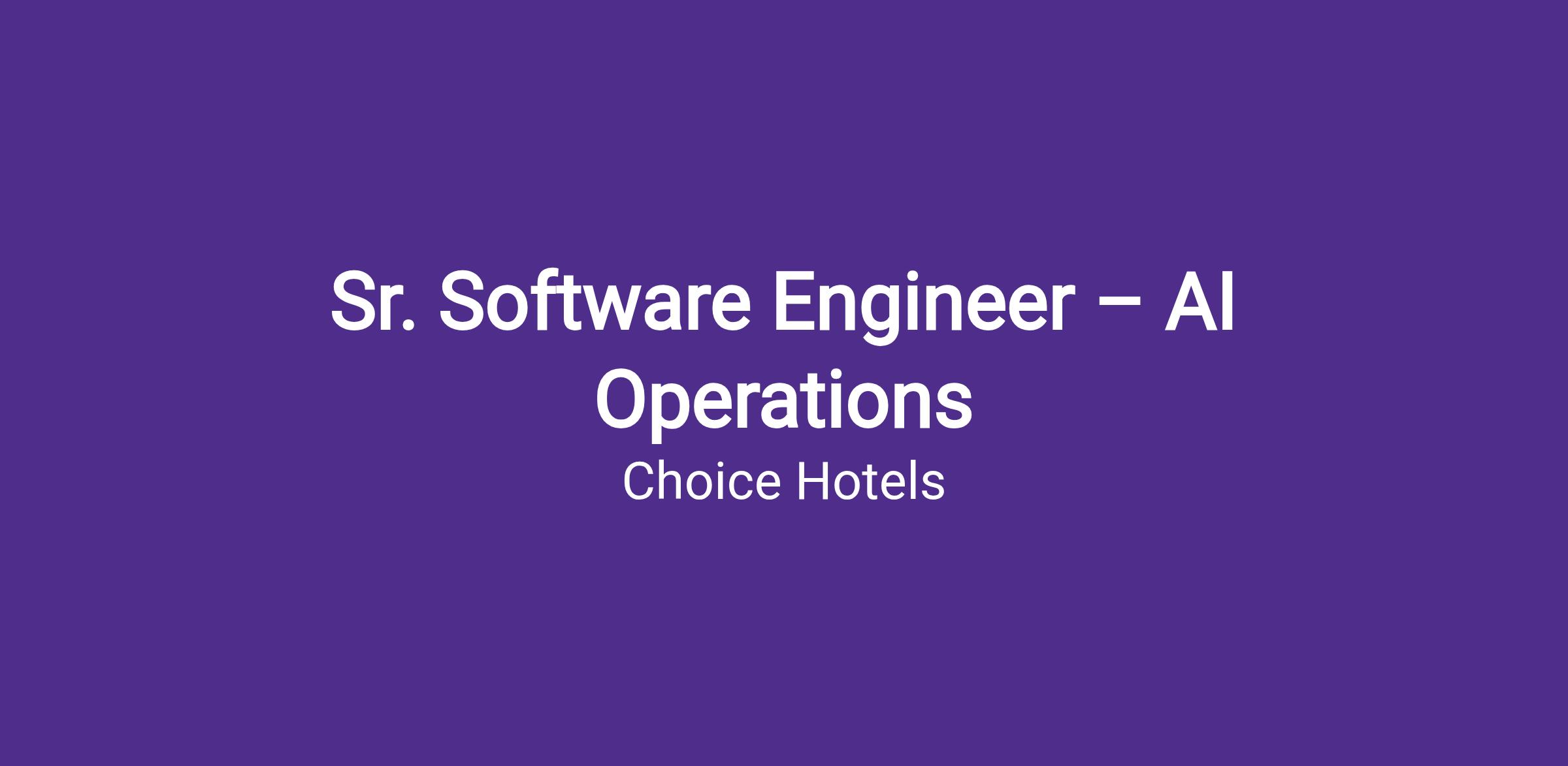 Choice Hotels, one of the world’s largest lodging franchisors, is seeking a Senior Software Engineer to join our AI Operations (AI Ops) team. This role is designed for a senior technologist who thrives in hands‑on engineering work and enjoys applying AI to improve reliability, efficiency, and scalability across enterprise technology platforms.