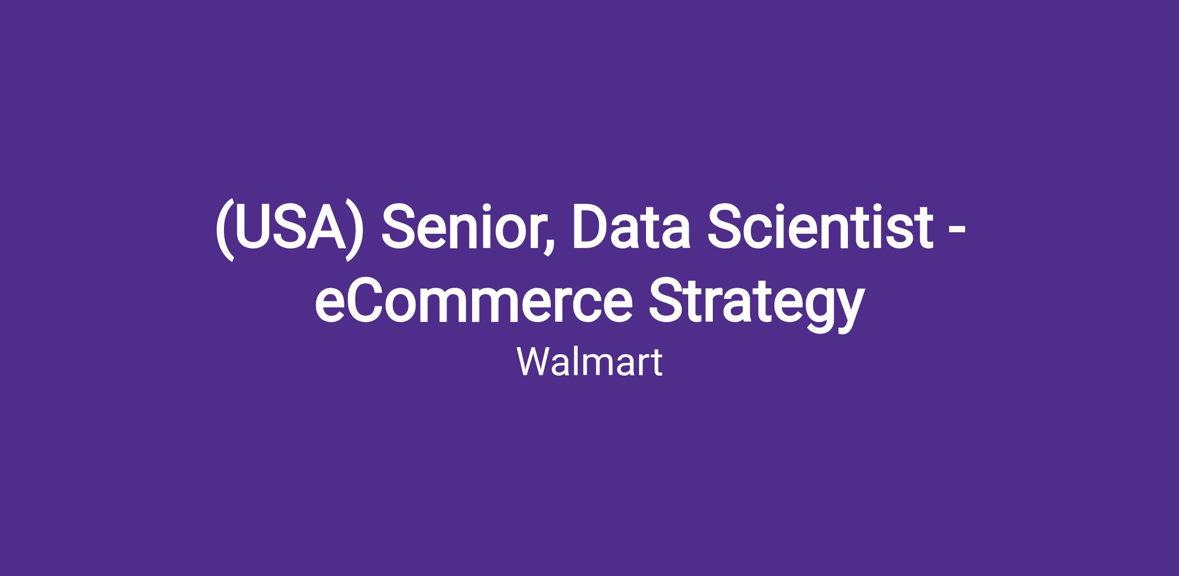 We’re looking for a Senior Data Scientist to lead and create initiatives for future strategies across Walmart that enhances our eCommerce Customer Value Proposition. This is a high-impact, high-visibility role within the organization with expectations to deliver immediate results. In this role, you’ll primarily be responsible for creating a long-term strategy and transformative path for Walmart’s rapidly growing omnichannel business.